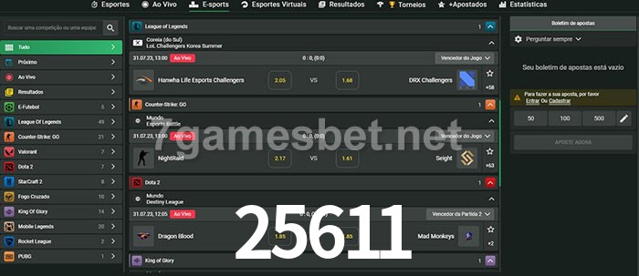 O 25611 oferece uma grande seleção de opções de apostas em e-sports com probabilidades competitivas